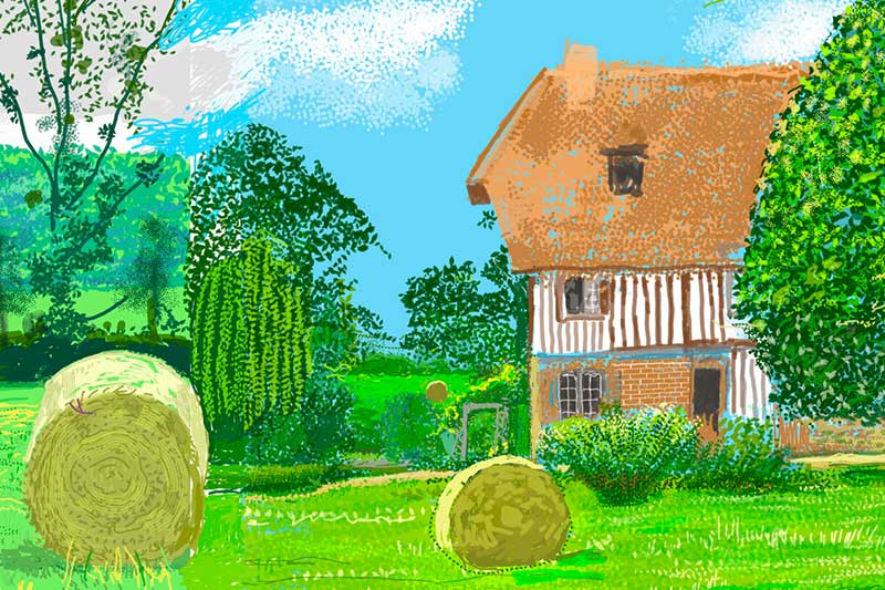 호크니가 노르망디에 정착한 후 집과 정원 주변의 소박하고 친밀한 풍경을 캔버스와 종이, 아이패드 등 다양한 매체로 담아낸 전시입니다.